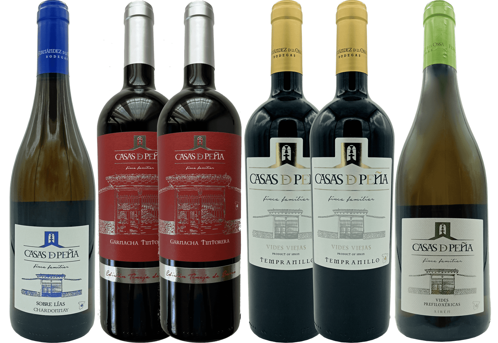 Nuestro exclusivo producto te presenta una combinación cuidadosamente elaborada de vinos que capturan la esencia de la excelencia enológica. Incluye 1 botella de Airen, 2 botellas de Tempranillo, 2 botellas de Garnacha Tintorera y 1 botella de Chardonnay, en cantidades perfectamente equilibradas para una experiencia vinícola inolvidable.